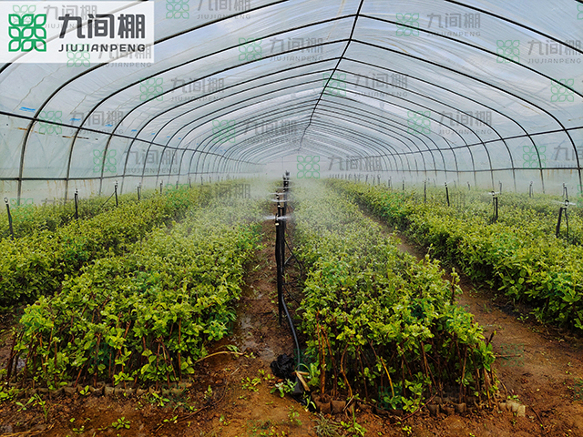圖一 九間棚集團(tuán)北花公司臨澗基地金銀花營(yíng)養(yǎng)缽大棚育苗(丁豐/拍攝)