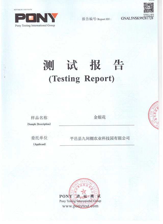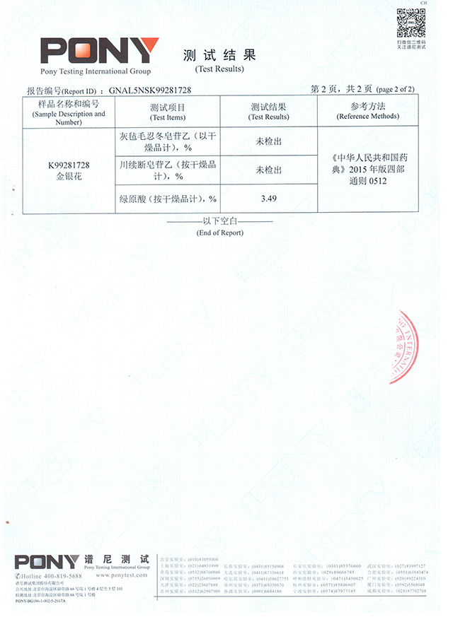 “北花一號”金銀花不含山銀花成分檢測報告(甘肅樣品)
