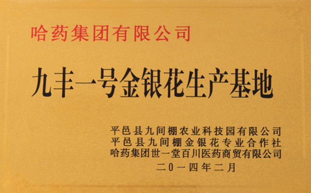 2014年2月,平邑縣九間棚農(nóng)業(yè)科技園有限公司與哈藥集團(tuán)合作建立九豐一號金銀花生產(chǎn)基地